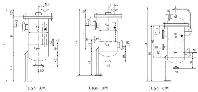 JHGN-III型精细过滤器,其滤件采用聚丙烯折叠式滤芯,具有过滤精度高,处理量大等优点,可用于液体、气体过滤,过滤精度0.1~60μm。